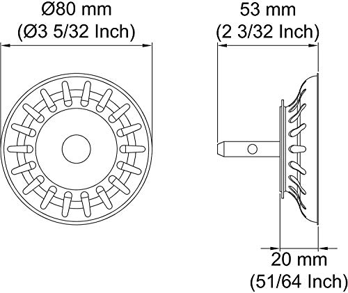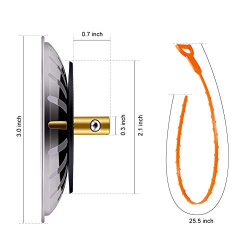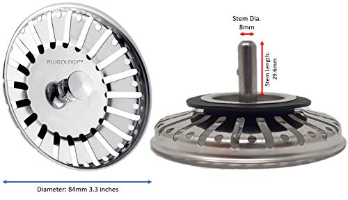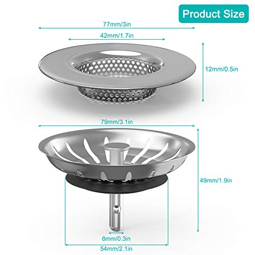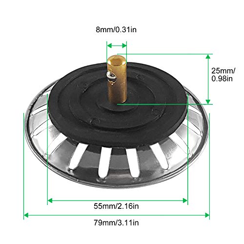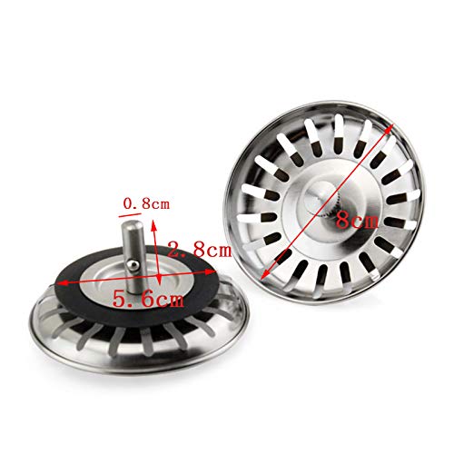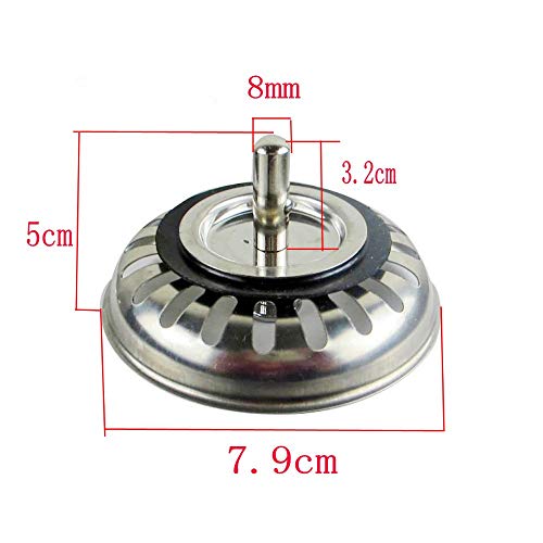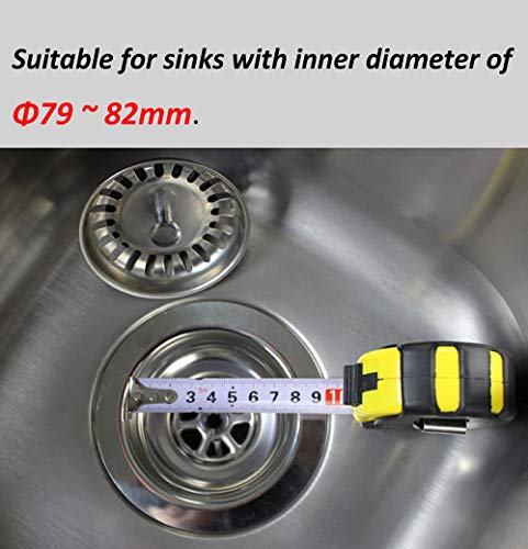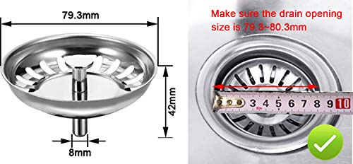 - TAMAÑO: La cesta del fregadero tiene un diámetro de 79mm, el tapón tiene un diámetro de 7mm. apto para desagüe del fregadero de 79~80mm de diámetro. NOTA: asegúrese de que sea del tamaño correcto antes de comprar.