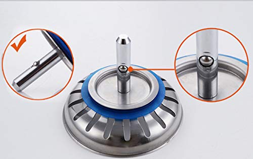 - RODAMIENTO DE BOLA PARA UN SELLADO PERFECTO DEL DESAGÜE: La junta de goma y el rodamiento de bola permiten que este filtro de fregadero se use como un tapón de desecho emergente. En la posición superior permite que el agua corra, recogiendo los residuos sólidos en la rejilla del propio tapón. Empuje el tapón hacia abajo para tapar el orificio.