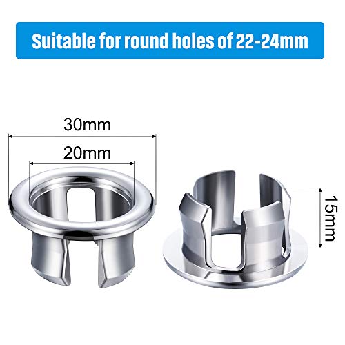 - Fácil de instalar: nuestros anillos de desbordamiento del fregadero son fáciles y convenientes de combinar con los grifos, simplemente debe presionar y hacer clic para colocarlos, poner un poco de jabón en ellos puede ayudar a deslizarlos fácilmente sin romper los pies de la tapa de la tapa, fácil para que lo instales