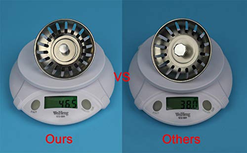 - DISEÑO ESPESOR: Hecho de acero inoxidable SUS304 de primera calidad, también aumentamos el grosor del tapón del colador del fregadero, por lo que es más resistente y duradero.
