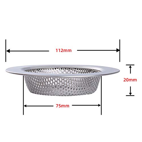 - Dimensiones: 2Pcs Fregadero Filtro de drenaje, Diámetro exterior de 112 mm. Diámetro interior de 75 mm. Profundidad: 20 mm. Diámetro de la micro perforación: 2 mm ; Atención para calcular bien el tamaño de su fregadero para que este modelo se corresponda bien.