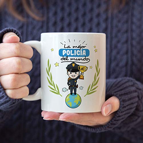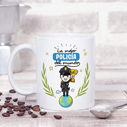 - Ideal como regalo para mujeres policía. ! Tu súper policía necesita pensar en ti todos los días. Pero… ¿no sabes cómo decirle "gracias" o "aprecio tu trabajo"? Bueno, ¿qué mejor manera que con una taza para la Mejor Policía del Mundo? Nuestras tazas para regalo son sinónimo de buen precio, mensajes divertidos, colores vivos y calidad. Un regalo original único e inolvidable, resistente al uso diario