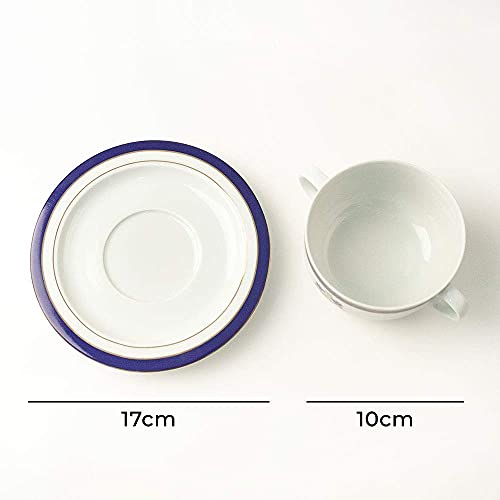Juego de 6 tazas de consomé con dos asas, porcelana blanca decorado...