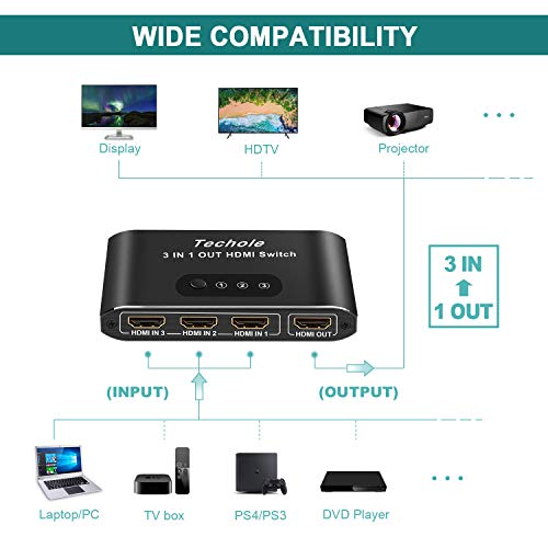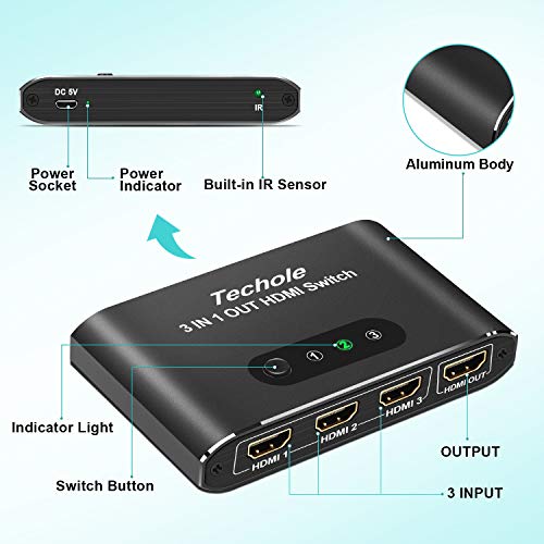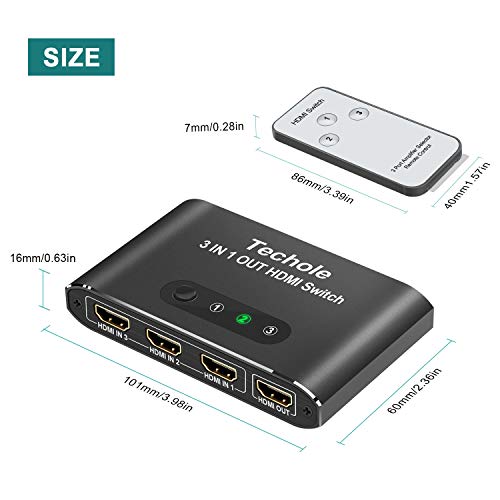 HDMI Switch 4K 60Hz, Techole Conmutador HDMI Switcher 3 Puertos con Control...
