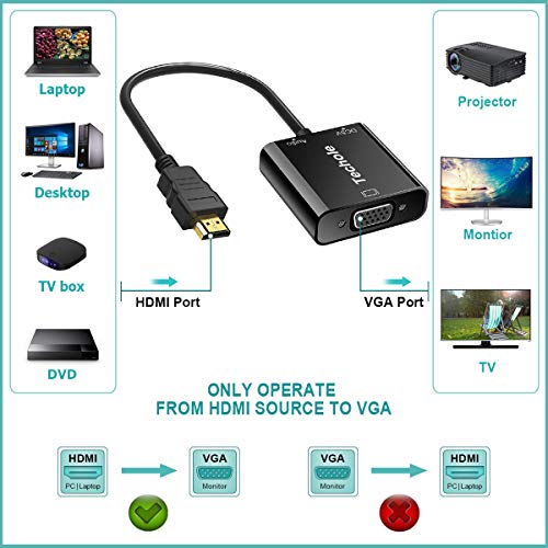 Techole Adaptador HDMI a VGA, HDMI a VGA (Macho a Hembra) 1080P...