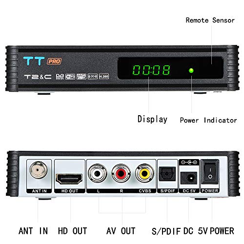 GT MEDIA TT Pro Decodificador TDT HD DVB-T/T2 Decodificador de TV por...