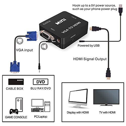 GANA VGA a HDMI Adaptador, VGA to HDMI Convertidor Transmisión de Audio...