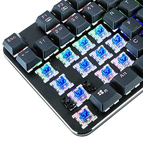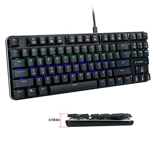 1 Teclado mecánico para juegos de perfil bajo, ultra delgado, clicky azul interruptor arco iris llevó retroiluminado, panel de aluminio TKL 87 teclas (US-Layout) teclado para PC Gamer Typist