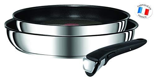 Tefal Ingenio Preference L9409042 – Set de sartenes 22/26 cm y mango, exterior acero inoxidable, thermo-spot, apto tipo de fuegos y inducción, apto para horno, antiadherente titanium