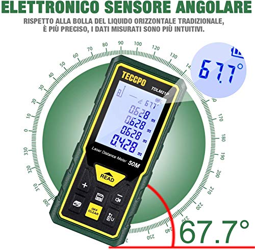 Telémetro Láser 50m, TECCPO Medidor Láser de Distancia con Precisión ± 2mm,...