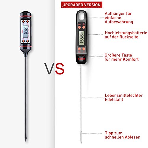 Habor Termometro de Cocina Termómetro para Carne Digital, Sonda Súper Larga, Lectura Instantánea de 5s Con Botón de ° C / ° F, Para Cocina, BBQ, Comida,...