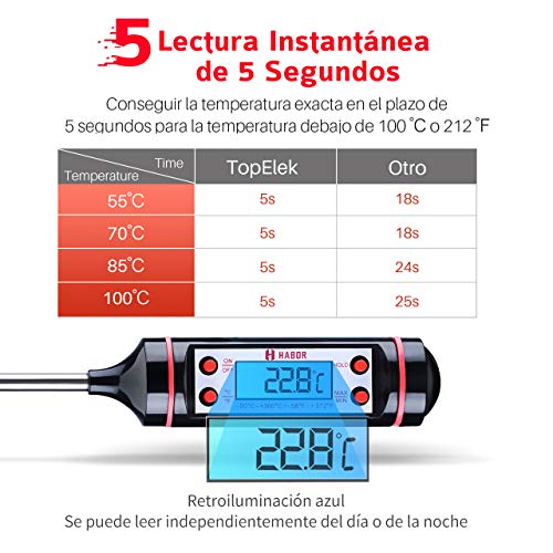 Habor Termometro de Cocina Termómetro para Carne Digital, Sonda Súper Larga, Lectura Instantánea de 5s Con Botón de ° C / ° F, Para Cocina, BBQ, Comida, Pavo, Caramelo, Leche, Agua de Baño