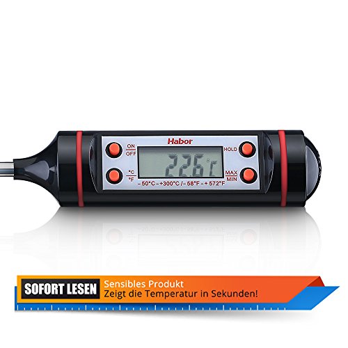 Habor Cocina, Digital Termometro de Horno con Pincho de Acero Inoxidable, de 5s con Botón de ° C / ° F, Pantalla LCD, BBQ, Comida, Pavo, Caramelo, Leche, 1...