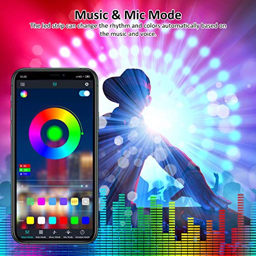 - 【Color DIY & Music Sync】 Puede personalizar el color según sus gustos de más de 16 millones de colores, ajustar el brillo y los modos de iluminación. Con un micrófono incorporado de alta sensibilidad, las luces LED de cuerda cambiarán los colores, el brillo y la frecuencia automáticamente dependiendo del ritmo de la música del entorno o de su teléfono inteligente. La sincronización musical crea un ambiente romántico, relajante y dinámico de acuerdo con la música ambiental.