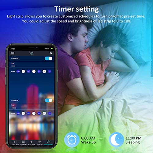 - 【Manage Modo de gestión y programación grupal】 Las luces de cuerda RGB BACKTRUE admiten la sincronización de múltiples grupos de luces. Puede controlar varias tiras de LED o crear un grupo para todas sus tiras de LED y controlarlas todas con la APLICACIÓN. Puede crear un horario personal configurando la hora en la aplicación "Ehome Light". Las luces LED se pueden encender o apagar automáticamente.