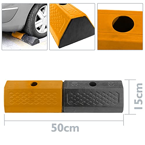 WilTec 2X Tope de Ruedas Aparcamiento 550x150x100mm con reflectores Negro-Amarillo Delimitar Parking