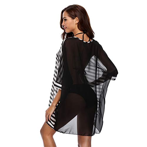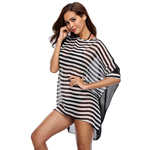 YJIUAS Mantillas Vestido de la Vendimia de Las Mujeres Stripe translúcido Playa...
