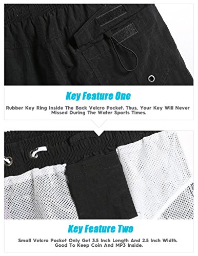 - Secado rápido: Normalmente toma de 5 a 10 minutos, los pantalones cortos ya se secarán. Los shorts consiguen tres bolsillos. Dos al lado y uno en la parte posterior. El bolsillo posterior de velcro lateral con drenaje.
