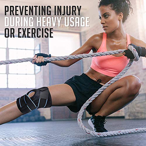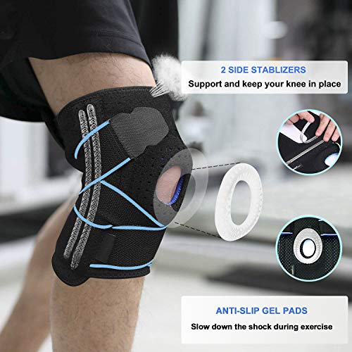 - 2 ESTABILIZADORES DE RESORTE (en cada lado) → ofrecen la máxima flexibilidad y soporte para la rodilla. Con compresión y protección, las rodilleras mejorarán la circulación sanguínea, aliviarán la presión de la rodilla y aliviarán la tensión muscular para minimizar la lesión en movimiento y el apoyo en la recuperación muscular.