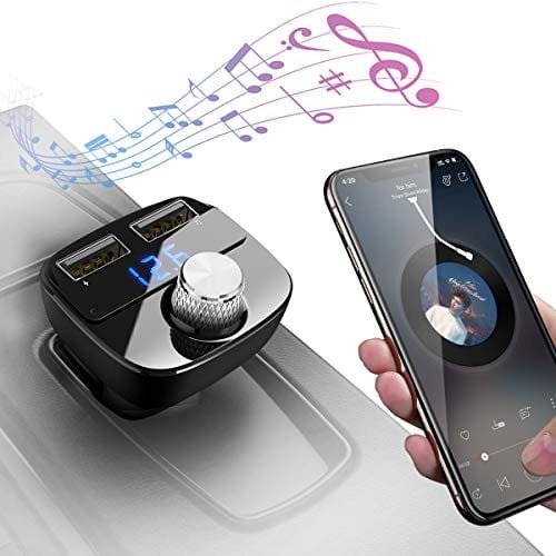 DIVI Manos Libres Bluetooth Coche Transmisor FM, Adaptador de Radio, Reproductor de MP3 Transmitter Cargador de Coche con Doble USB Puerto(5V-2.1A/5V-1.0A), Ranura para Tarjetas TF (Negro)