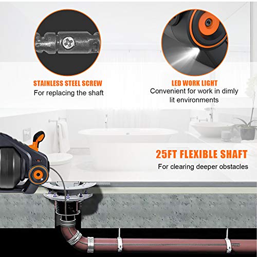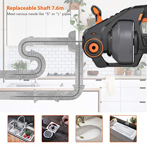 - [Eje flexible de 7.6M] Eje flexible de acero de 7.6M, adecuado para varios tipos de tuberías S y L.Después del uso,tenga en cuenta qu seque el eje suave y aplique aceite para evitar la oxidación. Lamentablemente,si su eje flexible está roto por la oxidación, por favor,comuníquese con el servicio al cliente, podemos entregarle otro eje sin cargo.