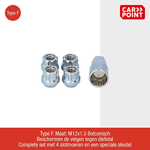 CARPOINT - Tuercas antirrobo para llantas, tipo F, juego de 4 tuercas...