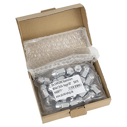 - 20 x Tuercas de rueda Haskyy M12x1.5x34 Collar cónico 60 ° para llantas de aluminio Ford originales ✔ Incluye bolsa para tuercas de rueda HASKYY 100% algodón