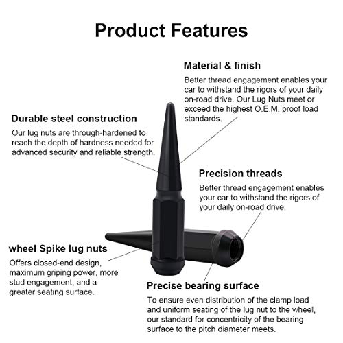 - 【Paquete】- 24 x tuercas de espiga + 1 llave de tuerca de tuerca negra, 12 meses de garantía y no dude en contactarnos con cualquier problema, responda en 24 horas.