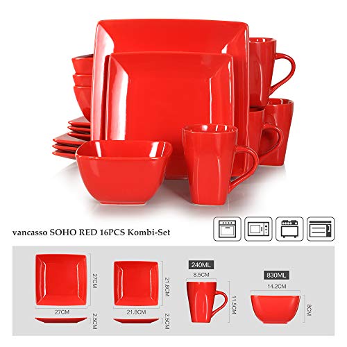 vancasso Serie Soho Juego de Vajillas Porcelana, Vajilla Cuadrada 16 Piezas Vajillas...