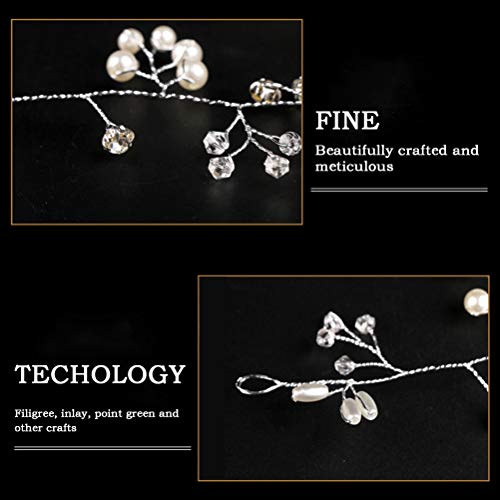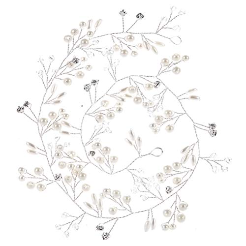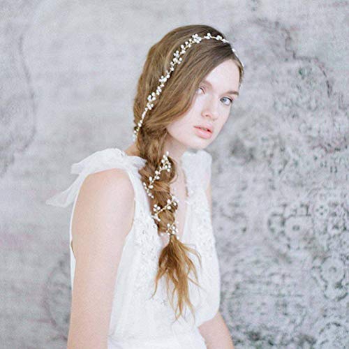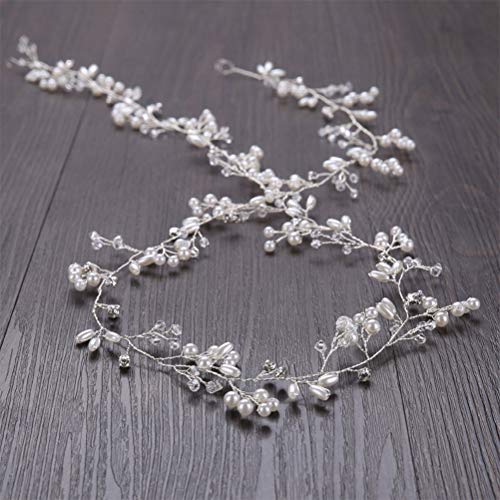 - Tamaño universal: banda de pelo de perla, 50 cm de largo, plata, diseño moderno, exquisito, elegante, se puede utilizar para una variedad de estilos de cabello, por lo que el peinado es único, más hermoso.