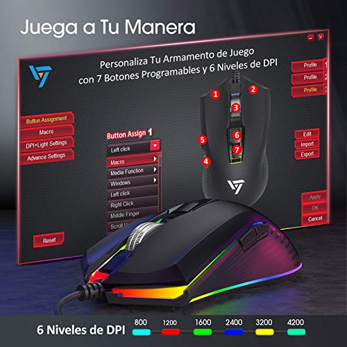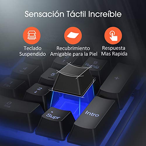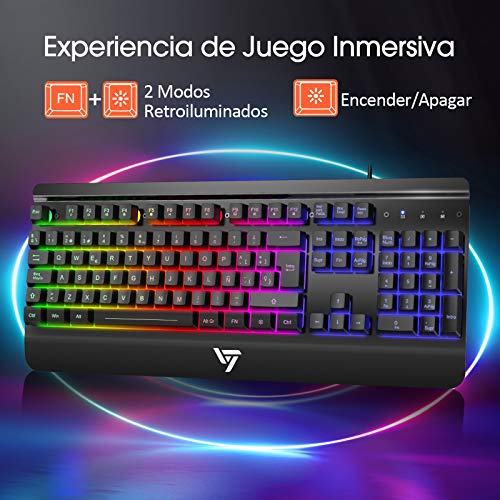 VicTsing Pack de Teclado y Ratón Gaming LED Luces, Teclado Gaming Rainbow...