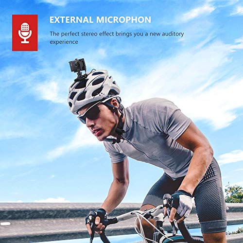 - Control Remoto y MicróFono Externo - Dispone de un mando a distancia de 2.4G, con el que podrá controlar su camara accion, admite hasta una distancia de 10 metros cuando la cámara está montada en la muñeca, casco, etc. Es muy cómodo para poder hacer fotos o videos cuando va de excursión, practica ciclismo, escalada, etc. El micrófono externo mejora la calidad del sonido cuando se graban videos.