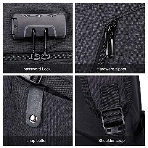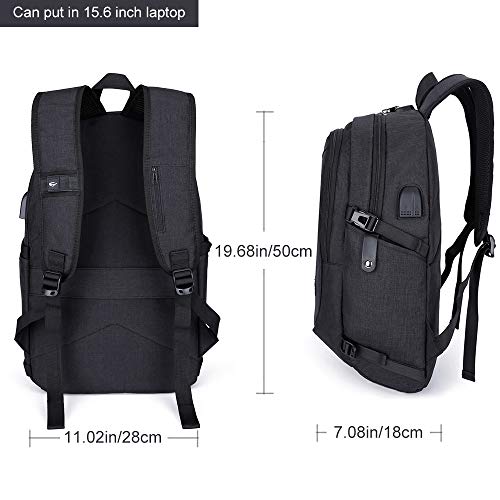 XQXA Mochila para portátil de 15.6 pulgadas, mochila antirrobo para hombre, mochila impermeable con carga USB, mochila portátil negra
