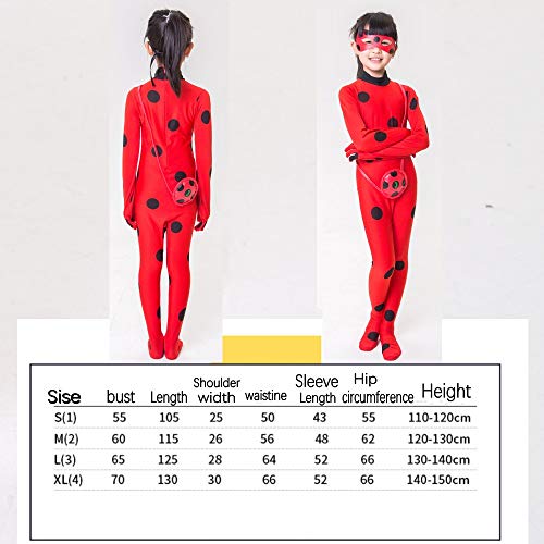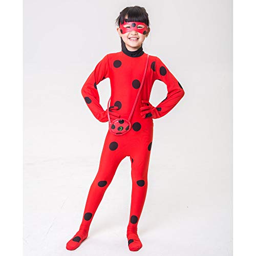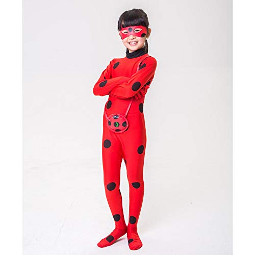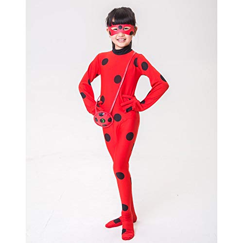 - ❥❥ TRAJES CLÁSICOS ANIMADOS: Disfraz de mariquita de niñas Disfraz de superhéroe de cosplay de fiesta de disfraces de Halloween para niños, a juego con la máscara de ojo y yo-yo bolsa, 3pcs vestirse trajes.