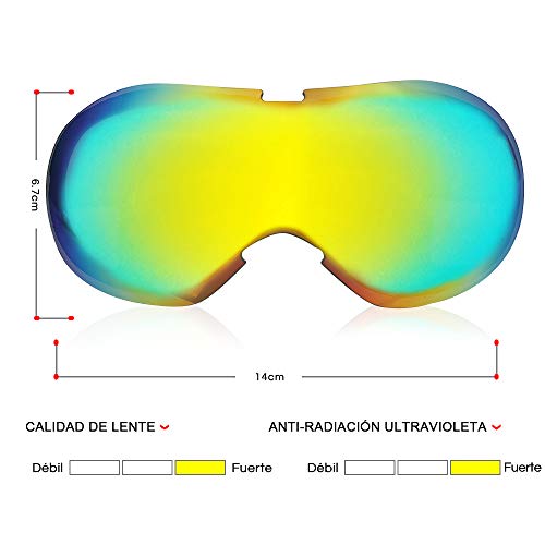 - Protección 100% UV: lente de doble capa, espejo completo, que previene eficazmente el reflejo del resplandor solar y la nieve y la luz dañina, protegiendo los ojos de los niños del daño.