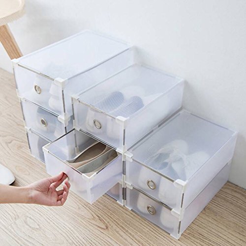 - Hecho del tablero plástico de la alta calidad que es más robusto y durable comparado a las cajas normales del zapato en el mercado. Estas cajas vienen llenas de embalaje por lo que todo lo que tienes que hacer es doblarlos y ponerlos juntos; Plegable, puede embalado plano para el almacenaje fácil cuando no en uso.