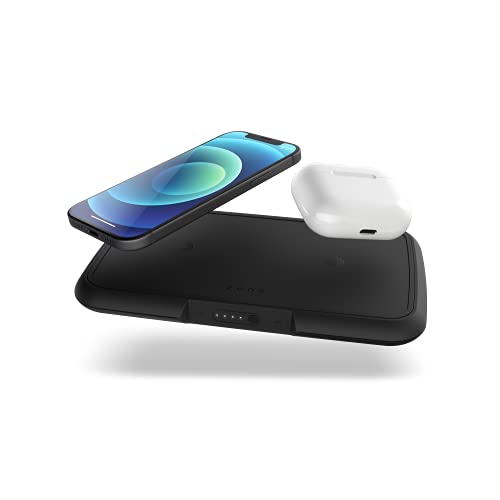 ZENS Qi Certificado Dual Wireless Power Bank 9000 mAh Capacity, Carga Dos Dispositivos simultáneamente, Inductivamente Recargable - Funciona con Todos los Dispositivos de Carga inalámbricos